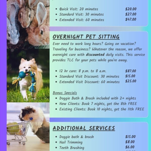 757.524.0631kirsten@petsittingpawfection.comMonday-Friday: 9:00am-5:00pm